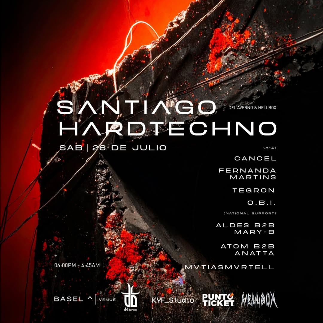Santiago Hardtechno2025Sab26Jul18:00CiudadSantiagoBasel Venue ProduceDel AvernoHellbox